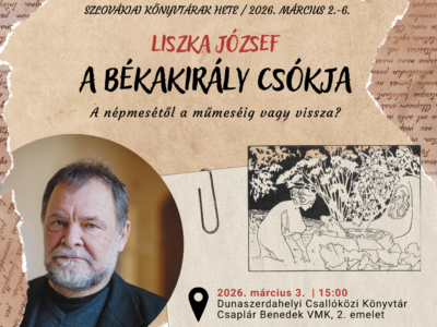 13 febr 2026 Előadás – A békekirály csókja Liszka József, a SzMAT tagja előadást tart a Dunaszerdahelyi Csallóközi Könyvtár és a SzMAT közös rendezvényén 2026. március 3-án 15:00 órától. Előadásának címe: A békakirály... Bővebben