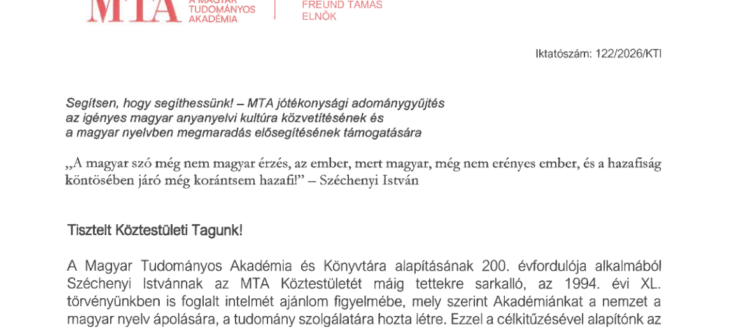 Segítsen, hogy segíthessünk! MTA jótékonysági adománygyűjtés az igényes magyar anyanyelvi kultúra közvetítésének és
